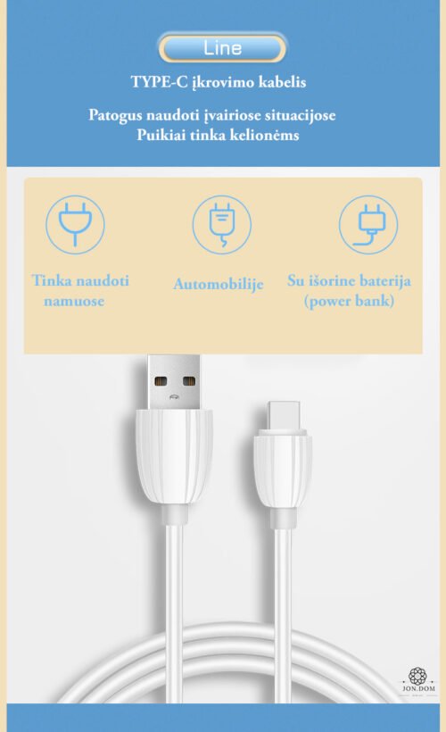 - USB jungtis – prijunkite prie power banko, automobilio kroviklio ar bet kokio USB lizdo.
