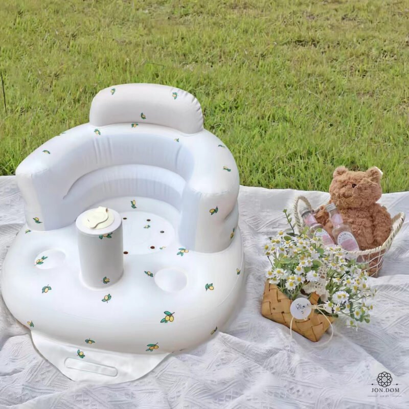 Baby Inflatable Seat – tai lengva, minkšta ir stabili pripučiama kėdutė, specialiai sukurta kūdikiams, kurie mokosi sėdėti savarankiškai.